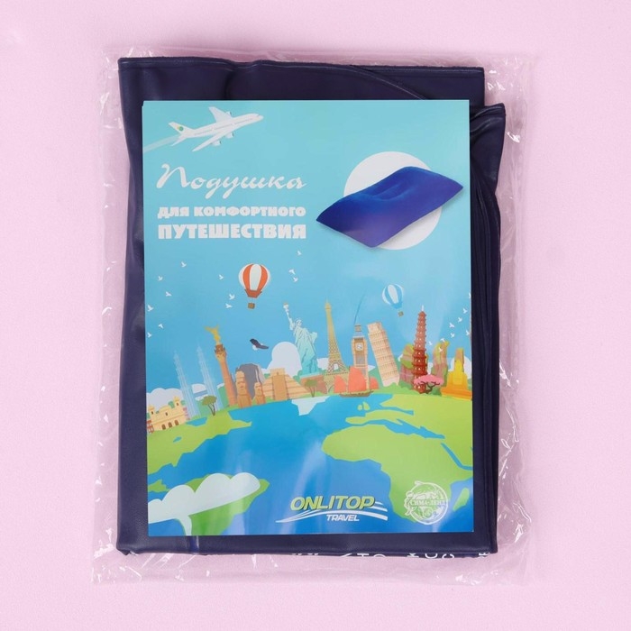 Подушка дорожная, надувная, 46 × 30 × 7,5 см, цвет синий
