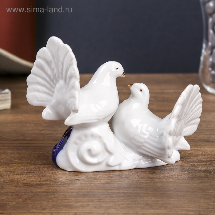 Сувенир керамика "2 голубка" кобальт, стразы 9,2х12х6 см