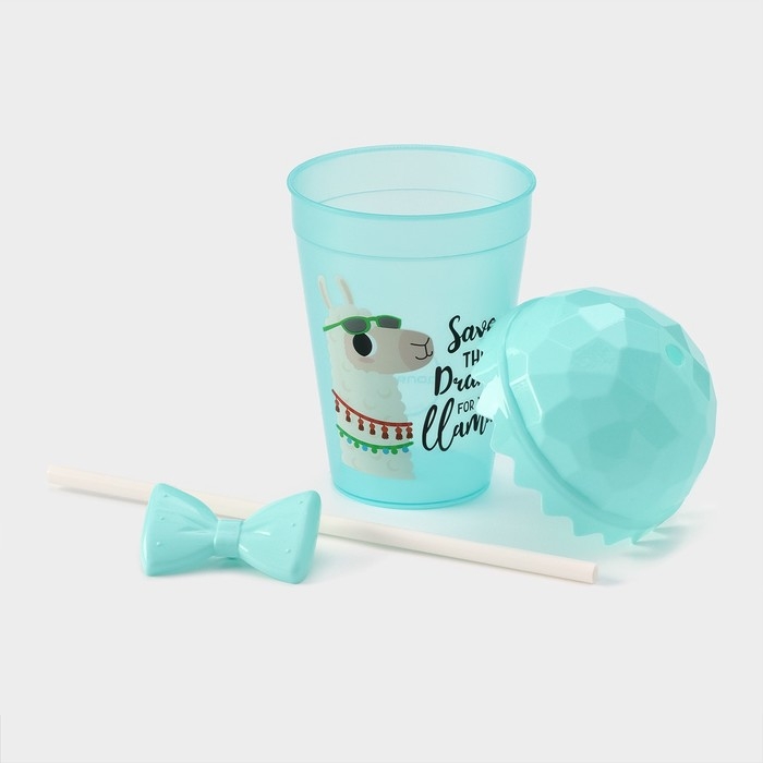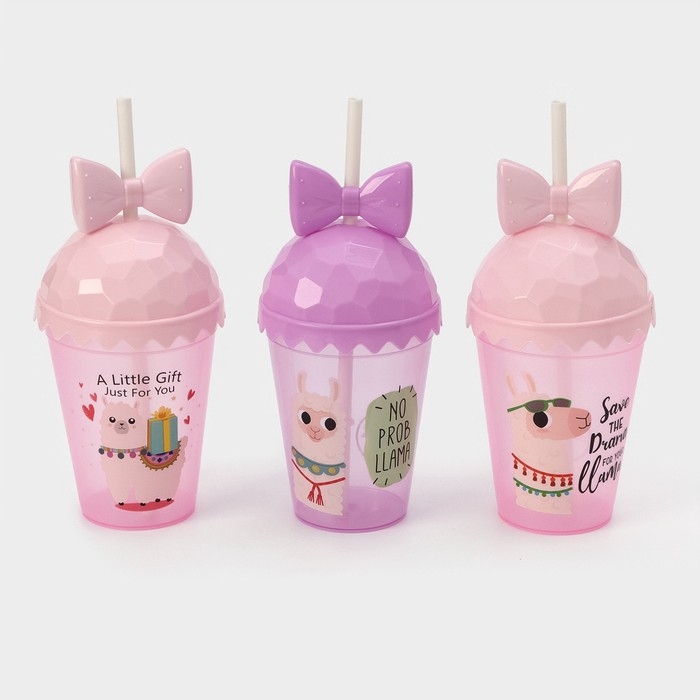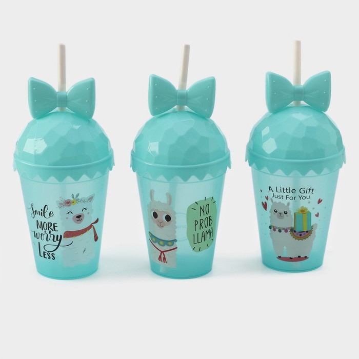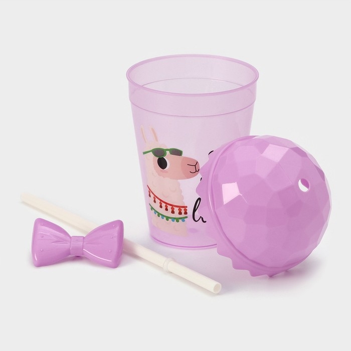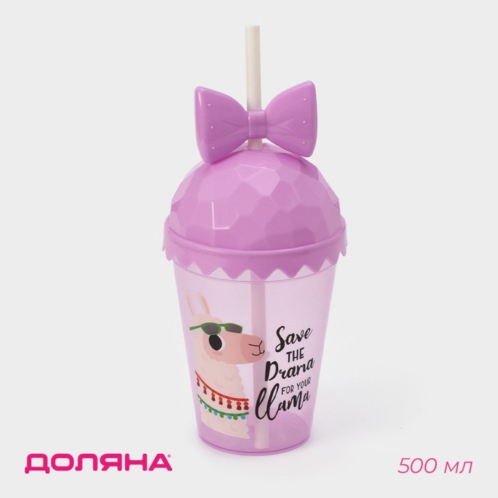 Стакан пластиковый с крышкой и трубочкой Доляна «Приключения ламы», 500 мл, цвет МИКС