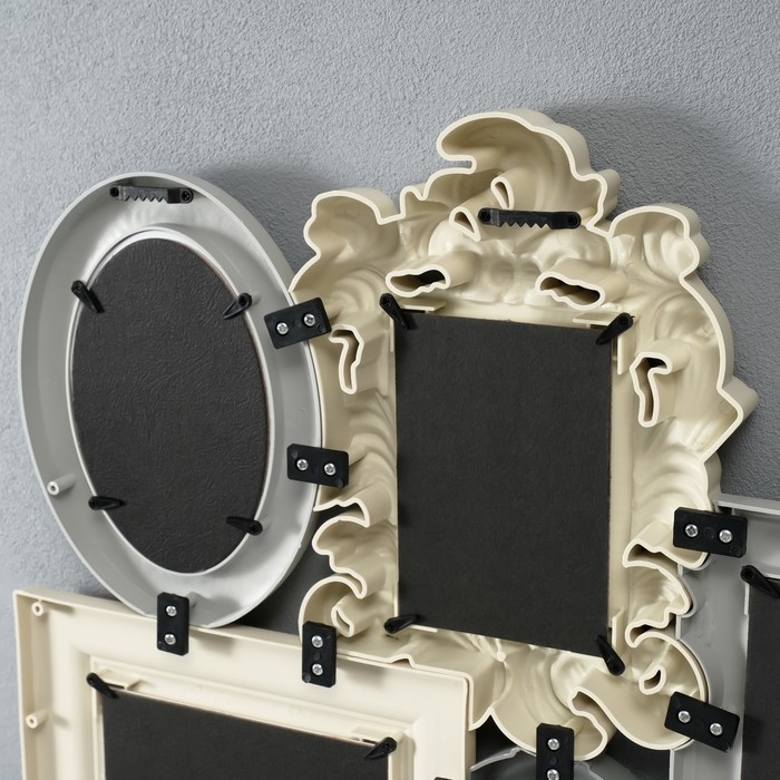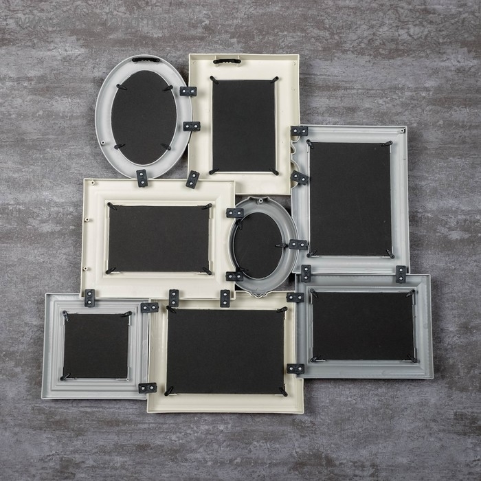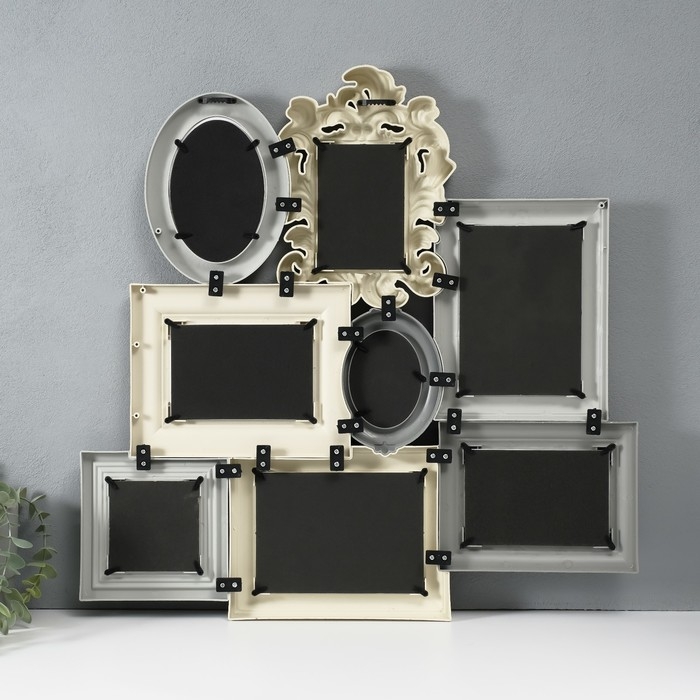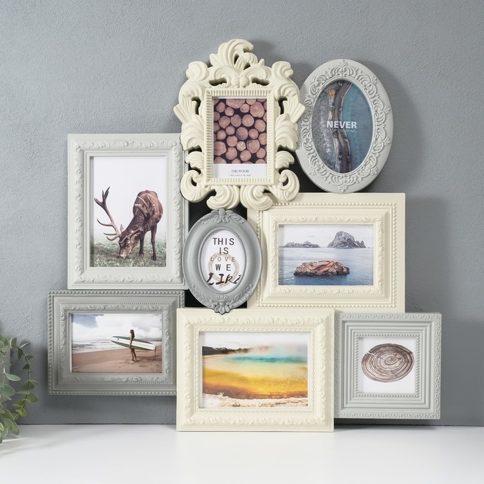Фоторамка пластик на 8 фото 8х10, 10х10, 10х15, 13х18 см "Классика" бежево-серая 55,5х57 см