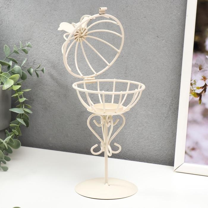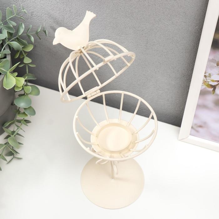 Подсвечник металл 1 свеча "Птица и гнездо" белый 23х10х10 см