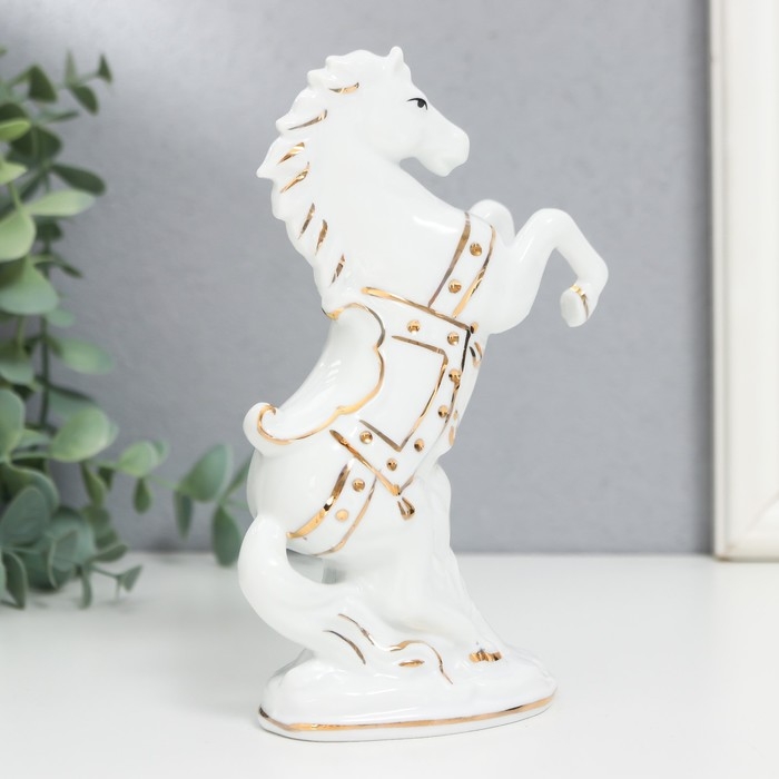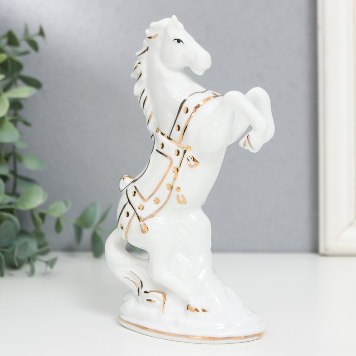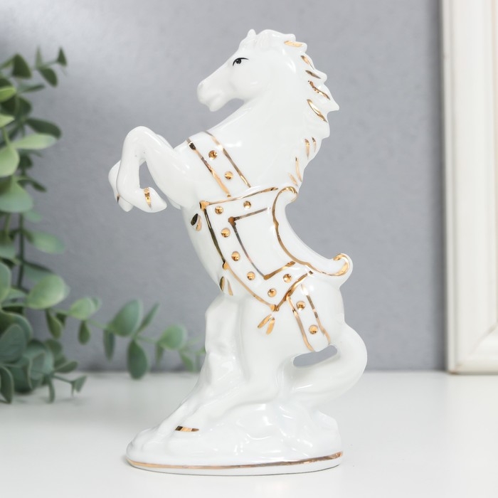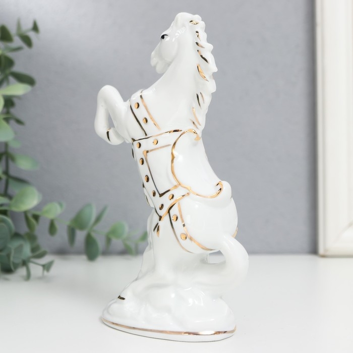 Сувенир керамика "Белый конь на дыбах" с золотом, 15 см