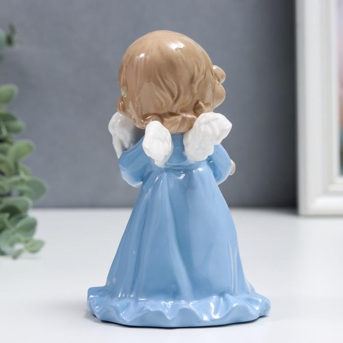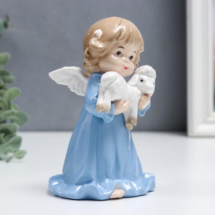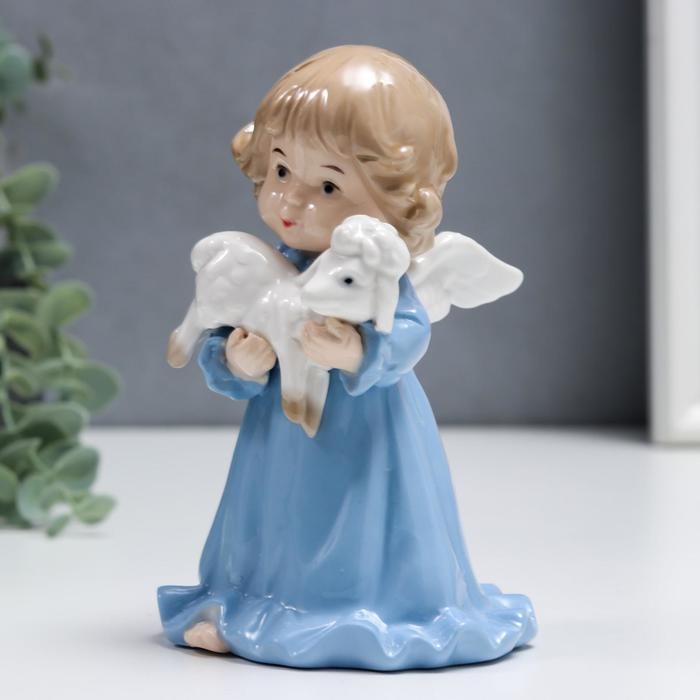 Сувенир керамика "Ангелочек в голубом платье, с барашком" 15 см