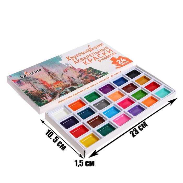 Акварель художественная в кюветах, 24 цвета
