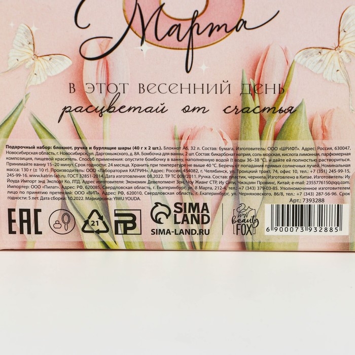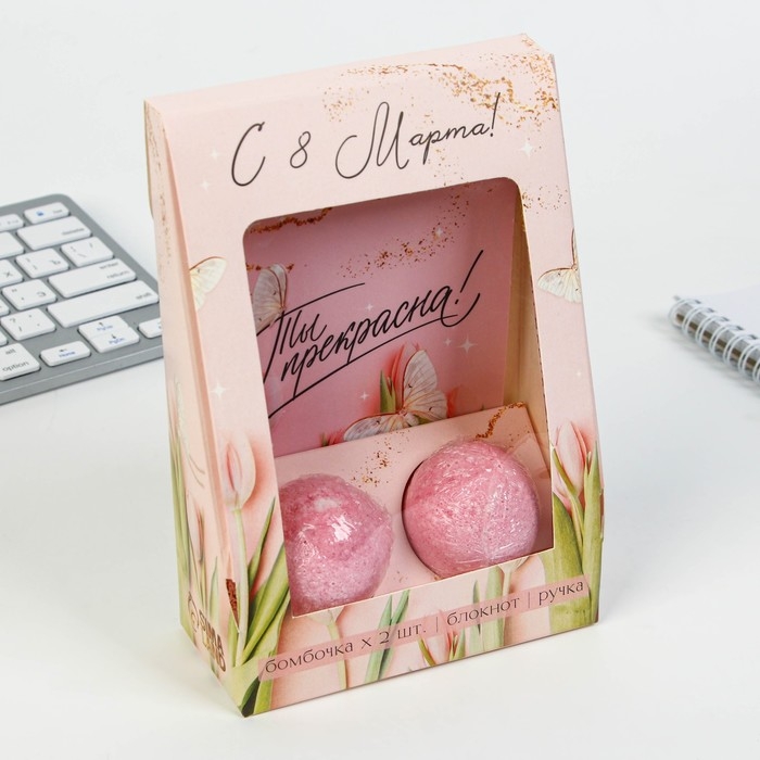 Подарочный набор «С 8 марта!»: блокнот А6 32 листа, ручка и бурлящий шар 2х40 гр