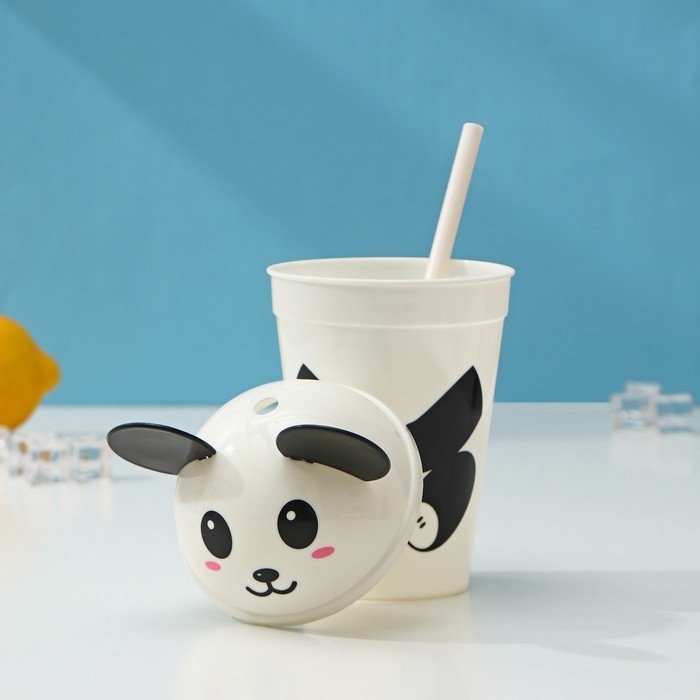 Стакан с крышкой и трубочкой «Панда», 450 мл, цвет белый