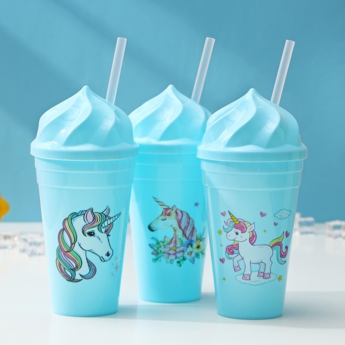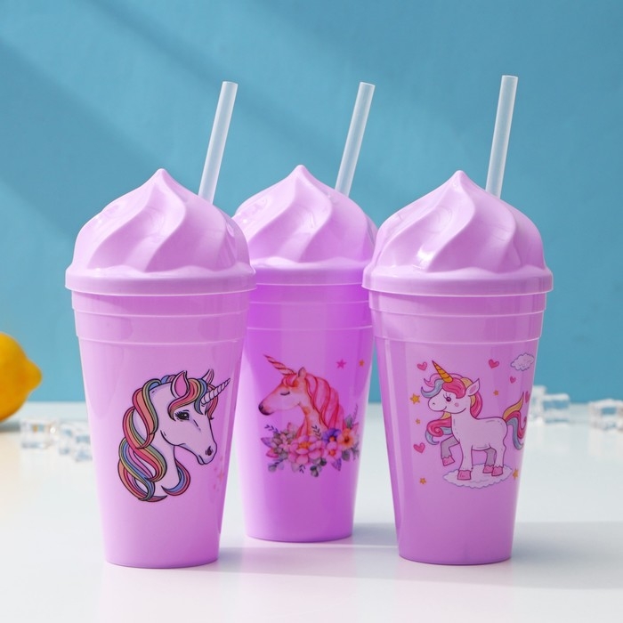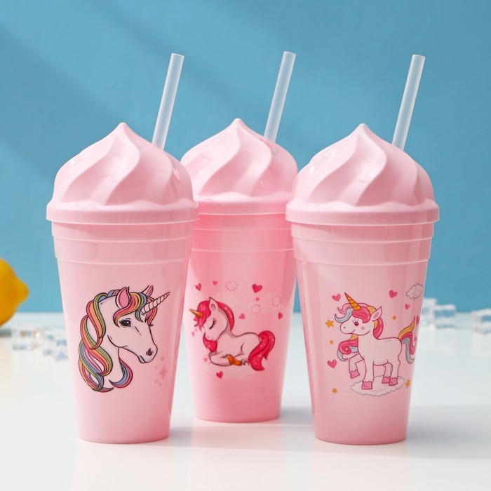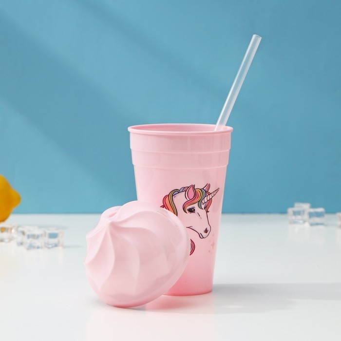 Стакан «Сказочный единорог», 450 мл, с крышкой и трубочкой, рисунок МИКС