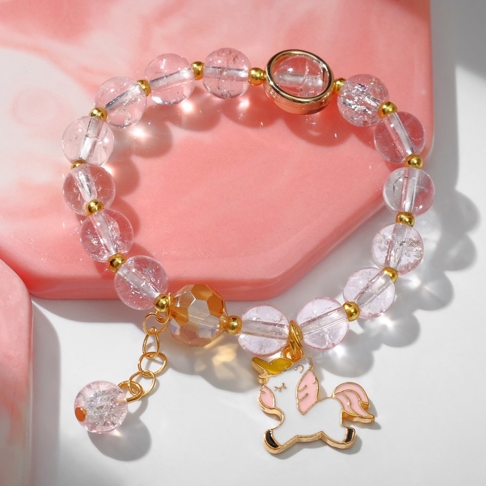Браслет детский "Выбражулька" единорог, цвет розовый в золоте