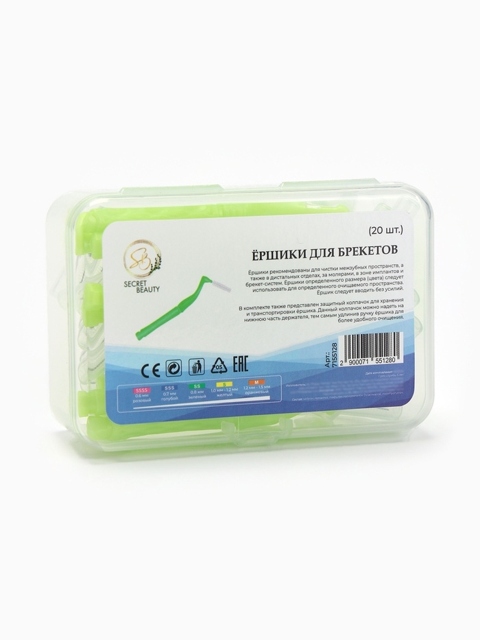 Ершики для брекетов и зубов, набор 20 шт., 0.8 мм