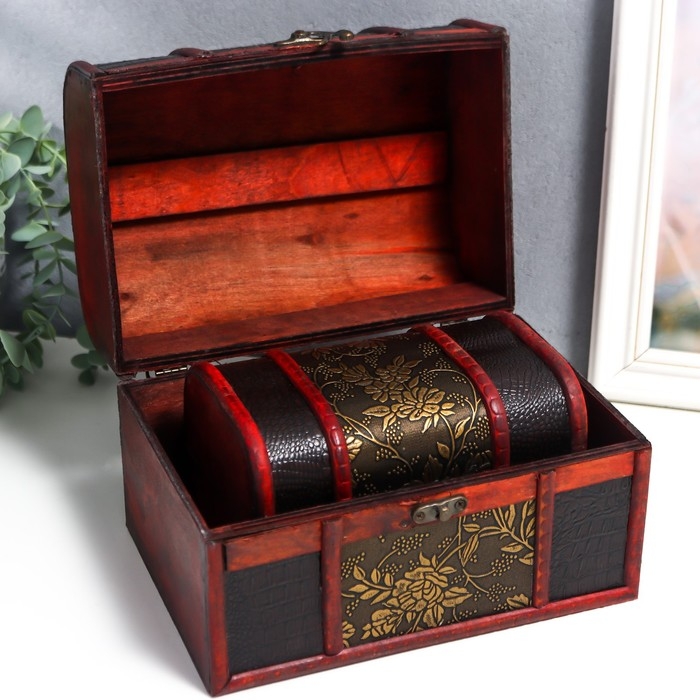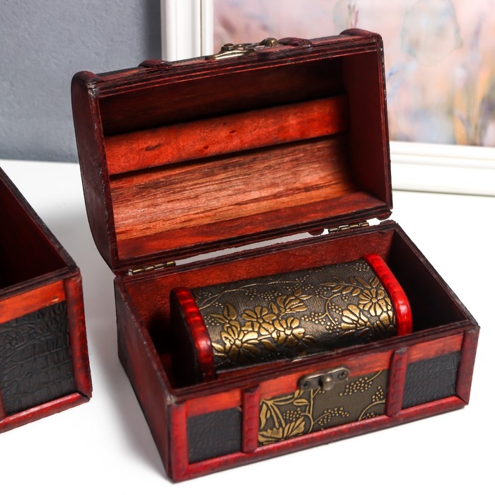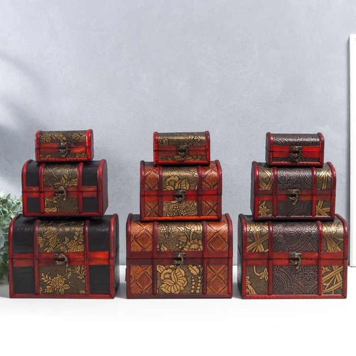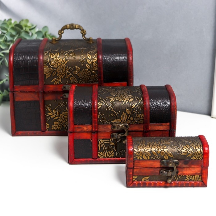 Шкатулка сундук дерево набор 3 шт узор "Цветы " МИКС 22х15х15 см