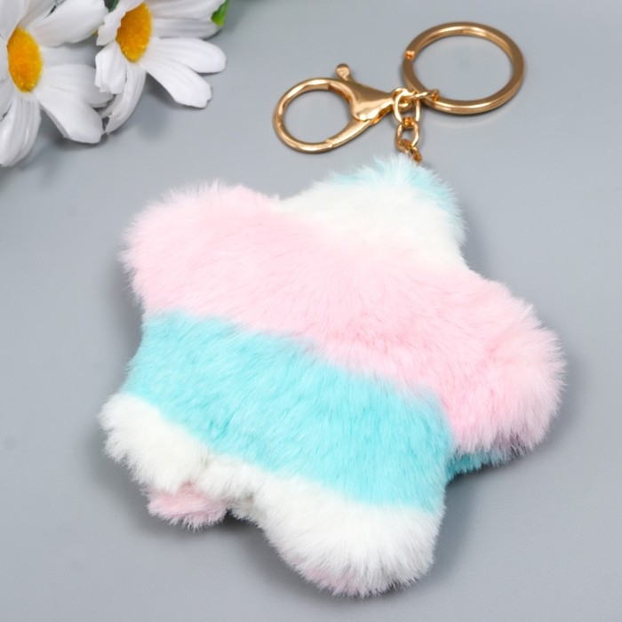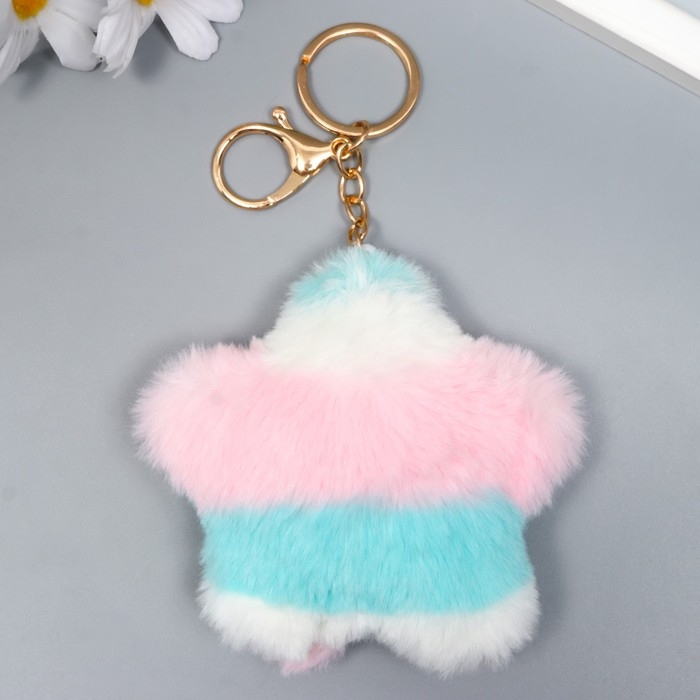 Пушистик на кольце с карабином "Полосатая звёздочка" пастель d=8 см