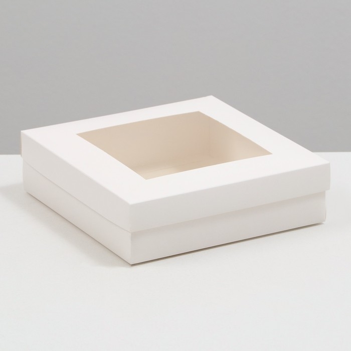Коробка складная, крышка-дно,с окном, белая, 23 х 23 х 6,5 см