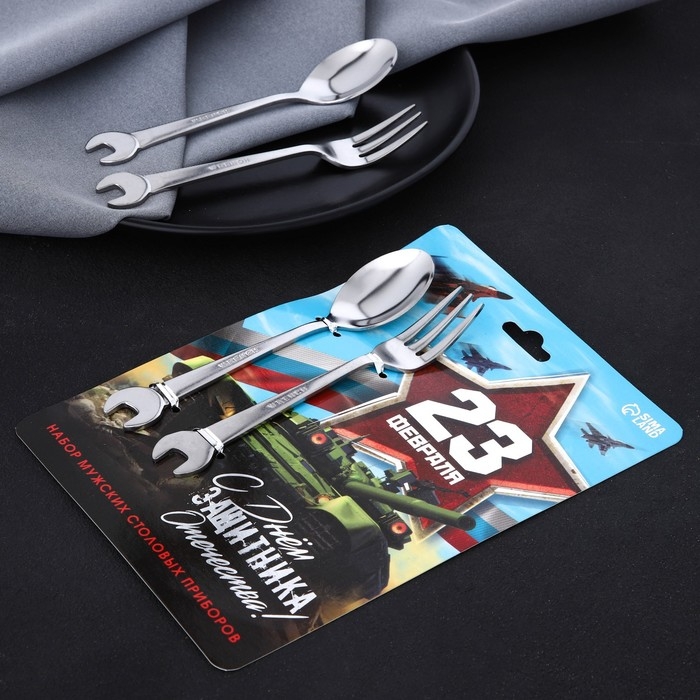 Набор столовых приборов: ложка и вилка «С Днём защитника Отечества!».