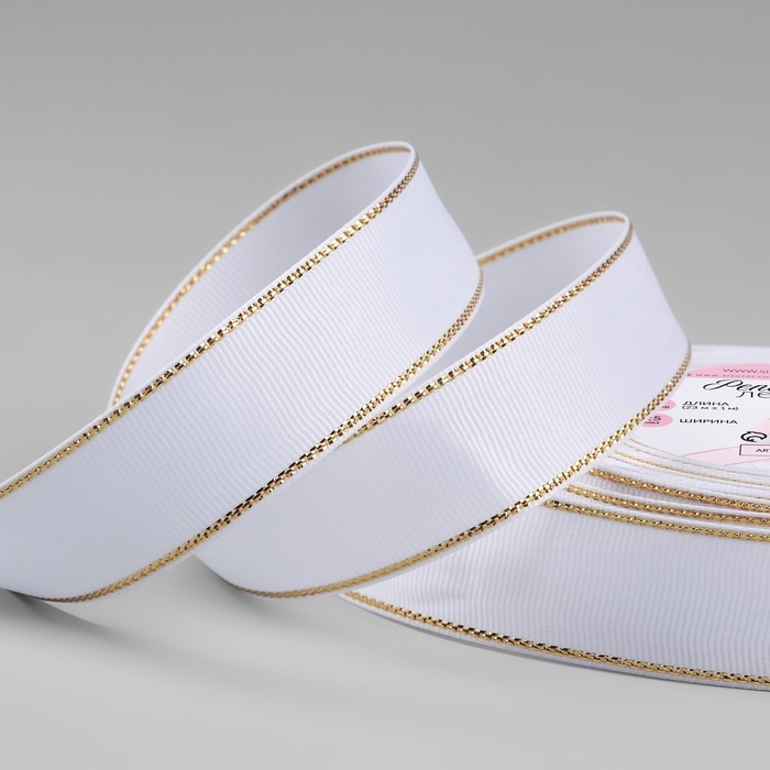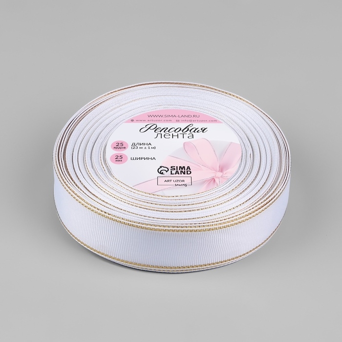 Лента репсовая «Золотые нити», 25 мм × 23 ± 1 м, цвет белый №001