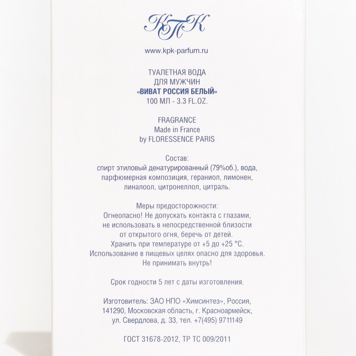 И для мужчины, и для женщины важно, чтобы аромат отражал их индивидуальность и социальный статус, идеально подходил к разным образам. В линейке КПК есть много оригинальных композиций, которые пользуются большой популярностью. Виват Россия! Белый — одна из них. Букет красиво раскрывается на коже, запах долго не выветривается.