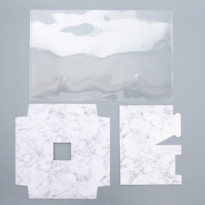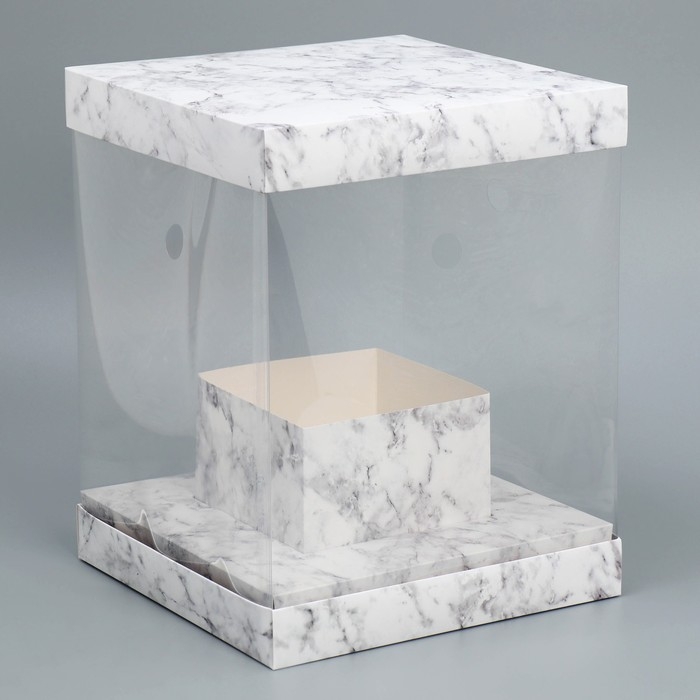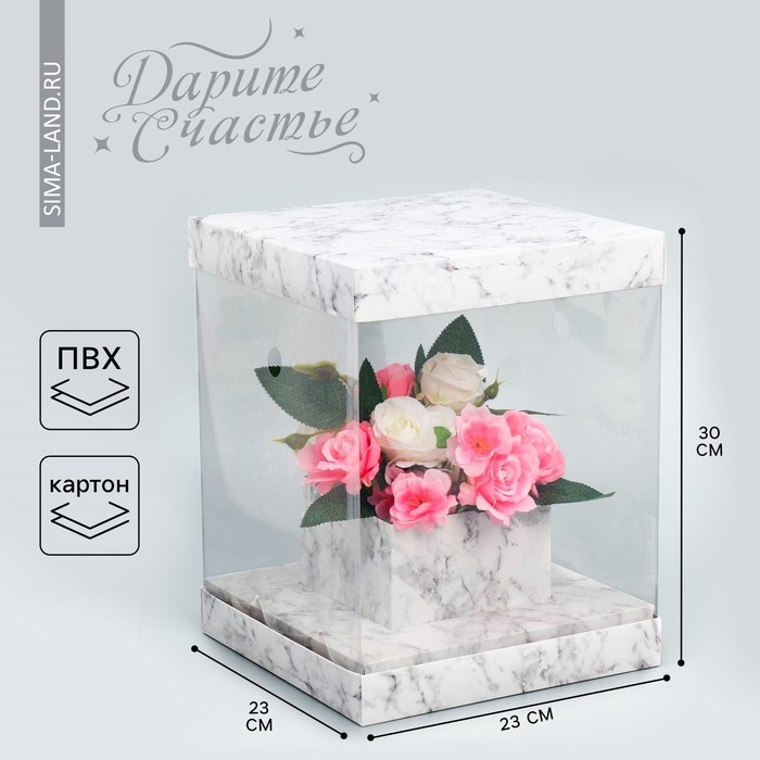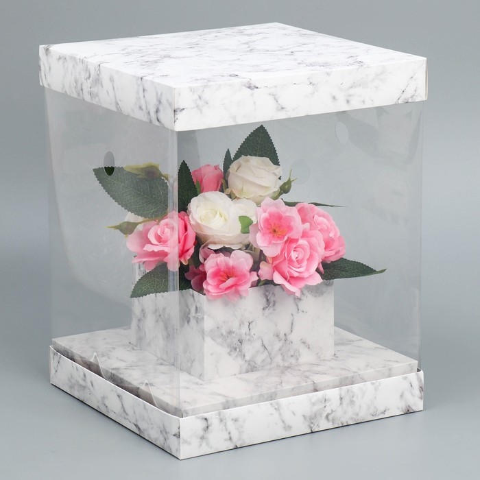 Коробка подарочная для цветов с вазой и PVC окнами складная, упаковка, «Мрамор», 23 х 30 х 23 см
