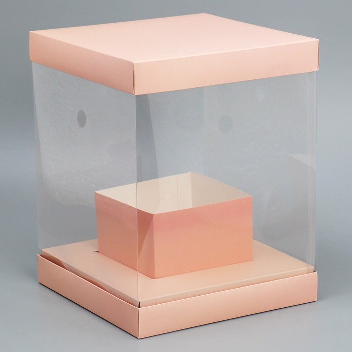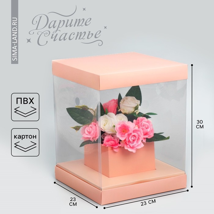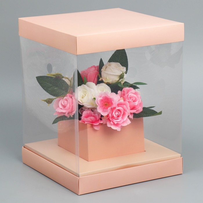 Коробка подарочная для цветов с вазой и PVC окнами складная, упаковка, «Персик», 23 х 30 х 23 см