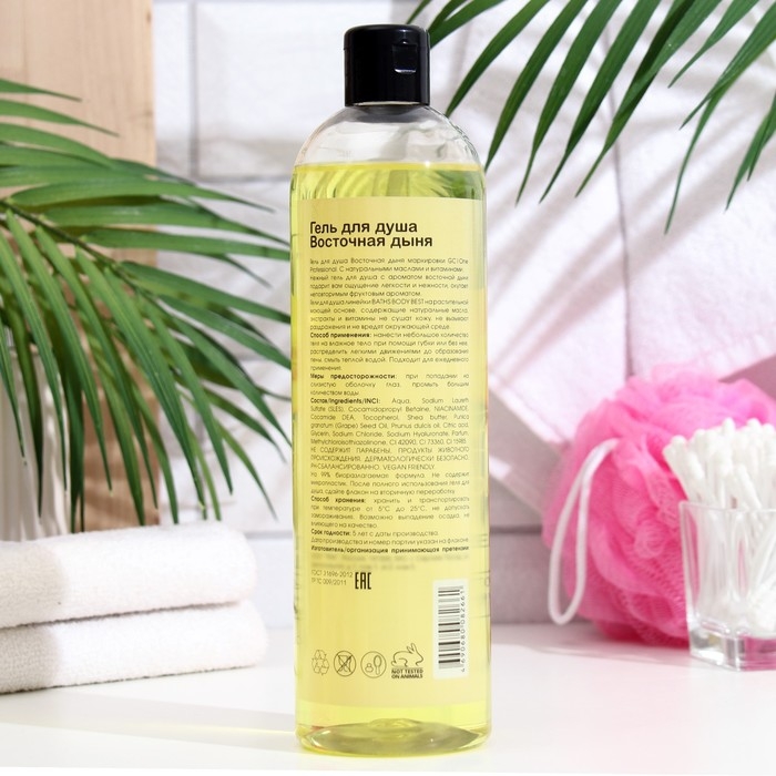 Гель для душа Восточная дыня маркировки GС|One Professional. С натуральными маслами и витаминами. Нежный гель для душа с ароматом восточной дыни подарит вам ощущение легкости и нежности, окутает неповторимым фруктовым ароматом. Гели для душа линейки BATHS BODY BEST на растительной моющей основе, содержащие натуральные масла, экстракты и витамины не сушат кожу, не вызывают раздражения и не вредят окружающей среде.