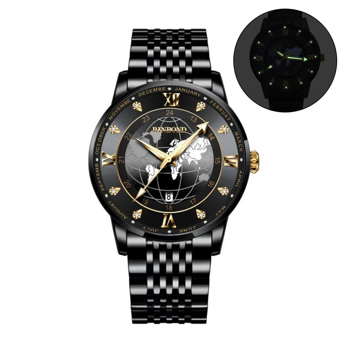 Часы наручные кварцевые мужские, d-4 см, ремешок l-26 см, 5 АТМ, светящиеся