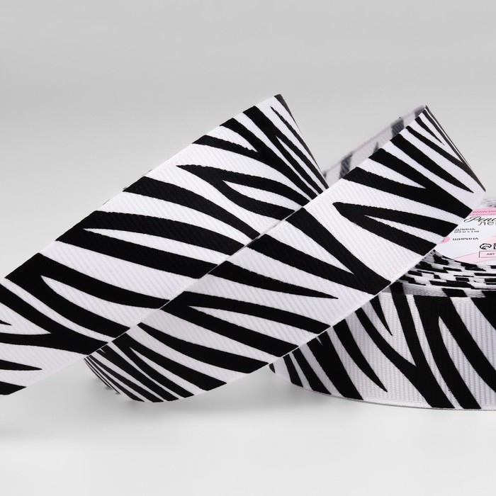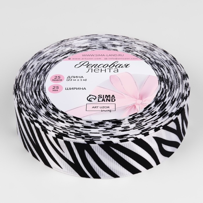 Лента репсовая «Зебра», 25 мм, 23 ± 1 м, цвет белый/чёрный