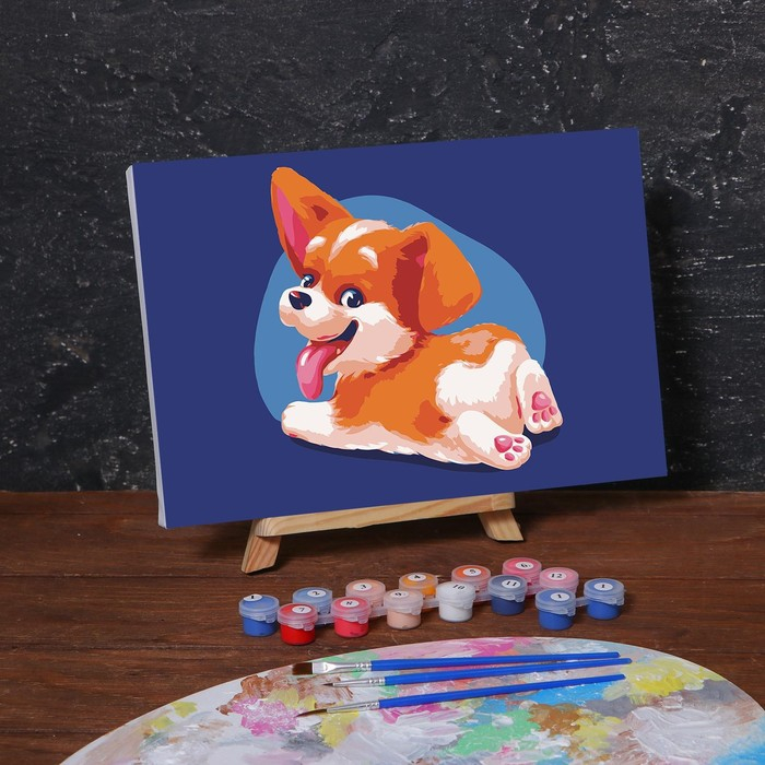 Картина по номерам на холсте с подрамником «Малыш Корги» 20х30 см понравится и детям, и взрослым.