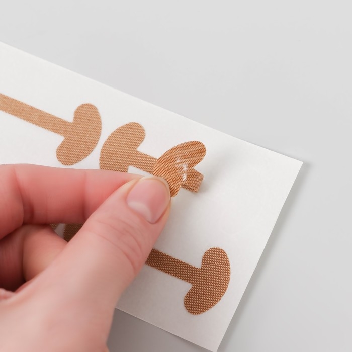 Наклейки выполнены из нетканого материала и пластика, что делает их гибкими и незаметными на ногтевой пластине. Бежевый цвет позволяет им оставаться практически невидимыми при носке, даже в открытой обуви. Благодаря эргономичному размеру 5,2 x 2 см, наклейки подходят для разных типов ногтей, обеспечивая универсальность использования.