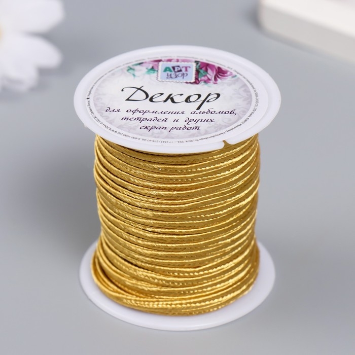 Сутажный шнур на бобине "Светлое золото" намотка 10 м толщина 3 мм 4,3х4,7х4,7 см