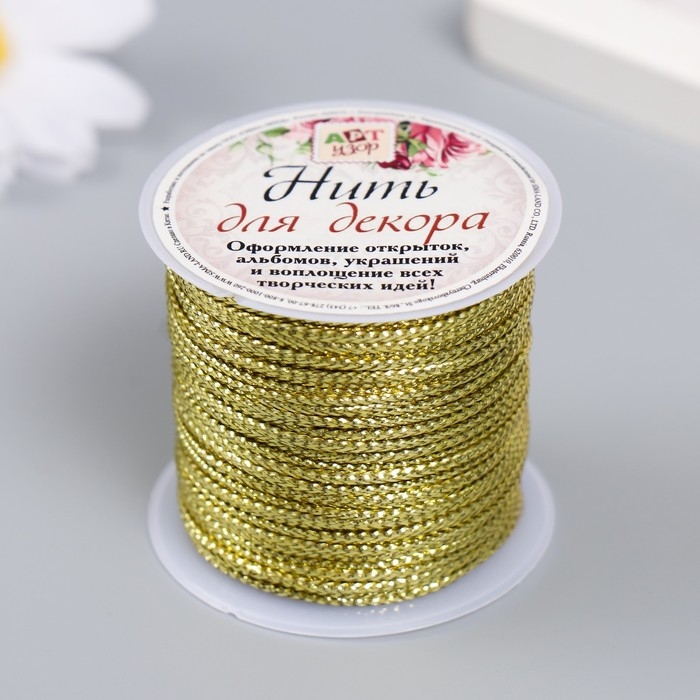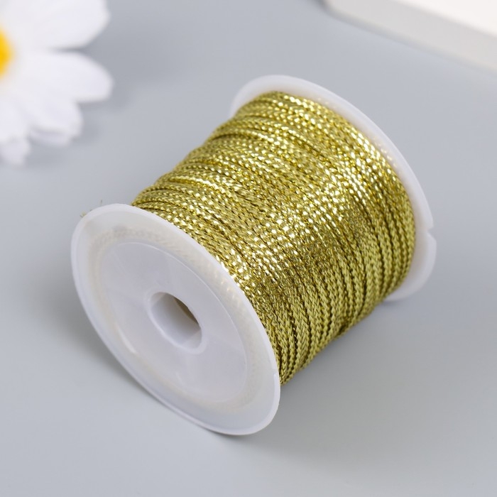 Сутажный шнур на бобине "Золото" намотка 15 м толщина 2 мм 4,3х4,7х4,7 см