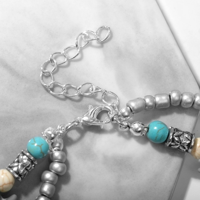 Браслет на ногу «Морской» хвостик, цвет бело-голубой в серебре, 25 см + удлинитель 5 см