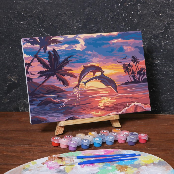 Картина по номерам на холсте с подрамником «Игра дельфинов» 20х30 см точно вам понравится!