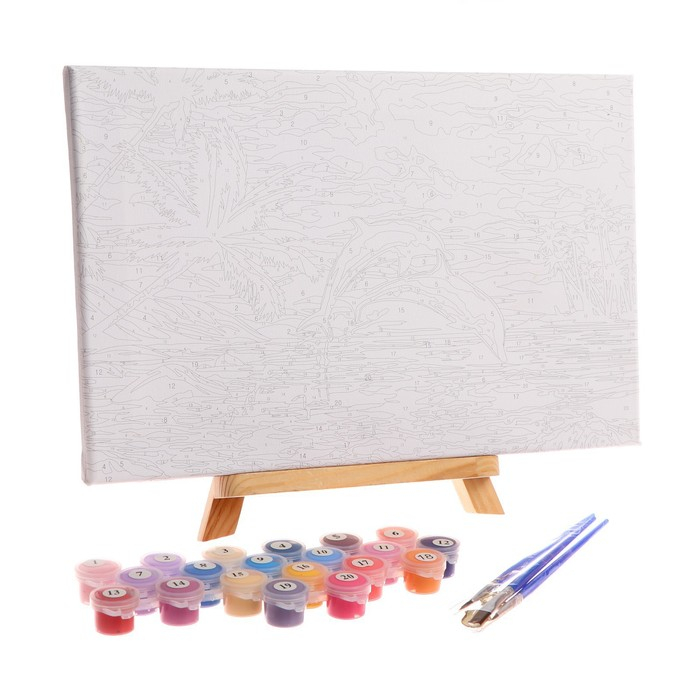 Картина по номерам на холсте с подрамником «Игра дельфинов» 20х30 см