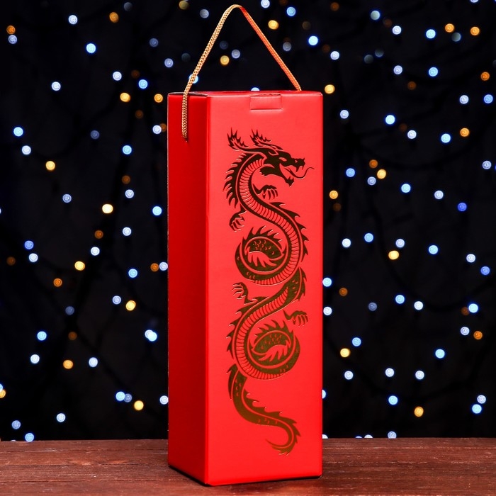 Коробка под шампанское "Дракон на красном", 11 х 11 х 35 см