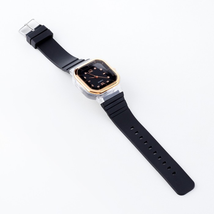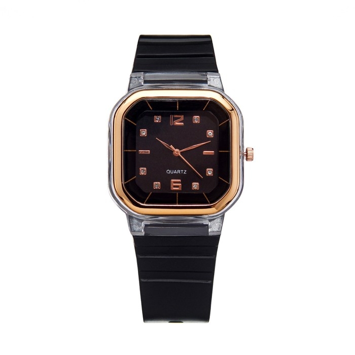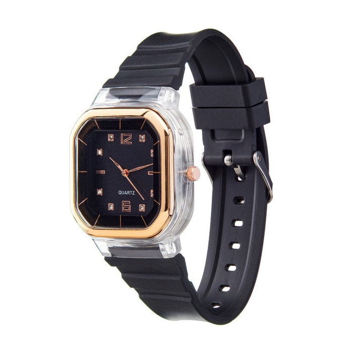 Часы наручные кварцевые женские, 4.1 х 4.1 см, ремешок силикон, черные