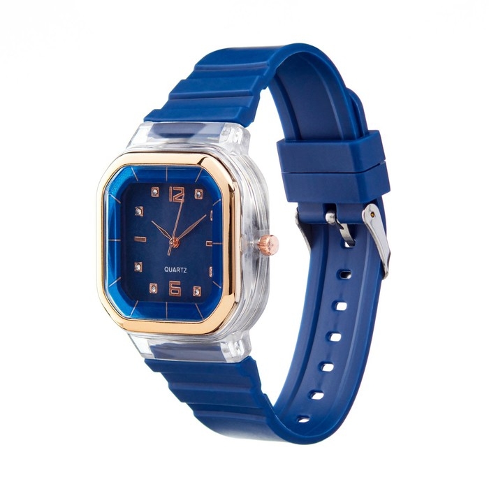 Часы наручные кварцевые женские, 4.1 х 4.1 см, ремешок силикон, синие