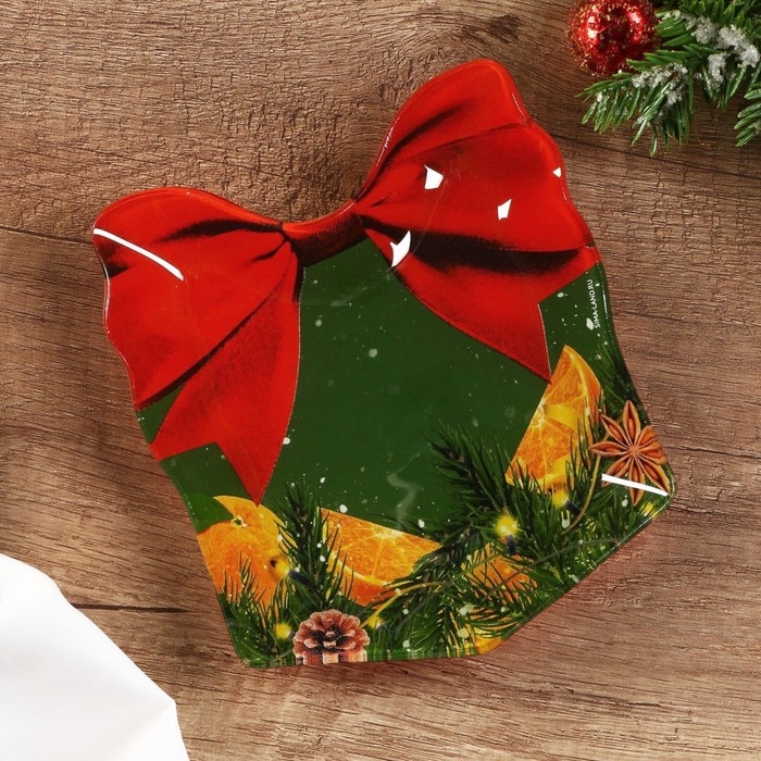 Тарелка новогодняя Дорого внимание «Апельсины», 15 х 17,3 см, стекло