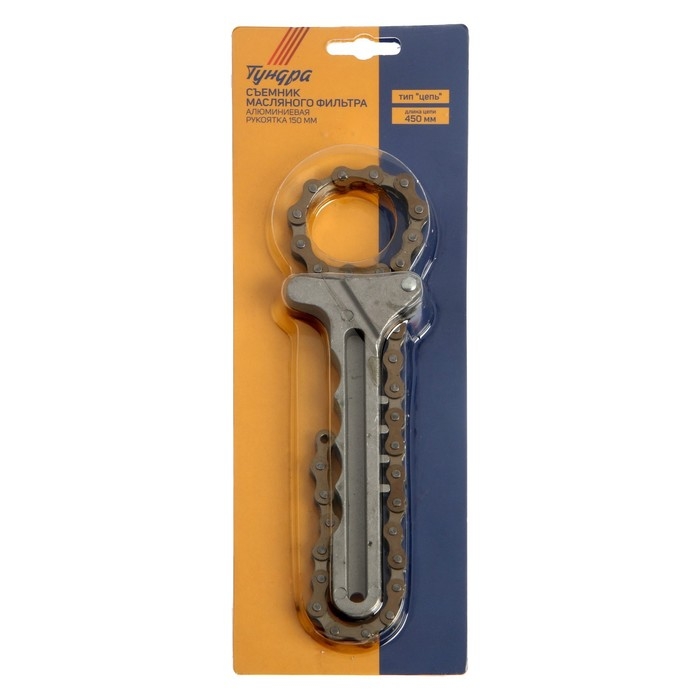 Съемник масляного фильтра ЛОМ, тип "цепь", алюминиевая рукоятка, цепь 450 мм, до 130 мм