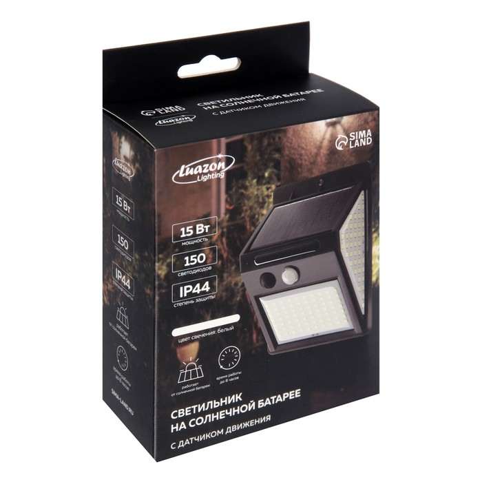 Садовый светильник на солнечной батарее с датчиком движения, накладной, 9.5 × 13 × 5 см, 150 LED, свечение белое