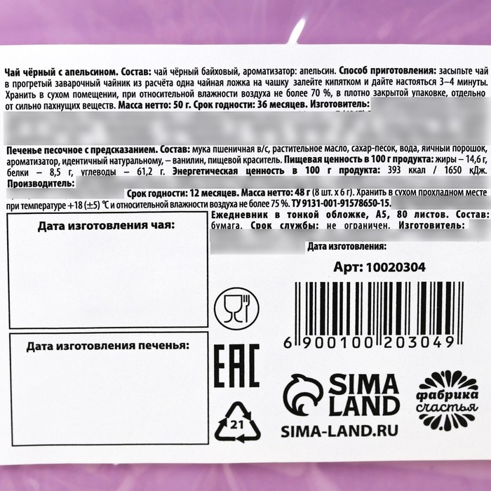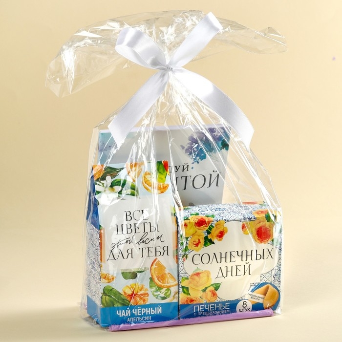Набор «Следуй за мечтой»: чай чёрный с апельсином 50 г., печенье с предсказаниями 48 г (8 шт. х 6 г)., ежедневник 80 листов