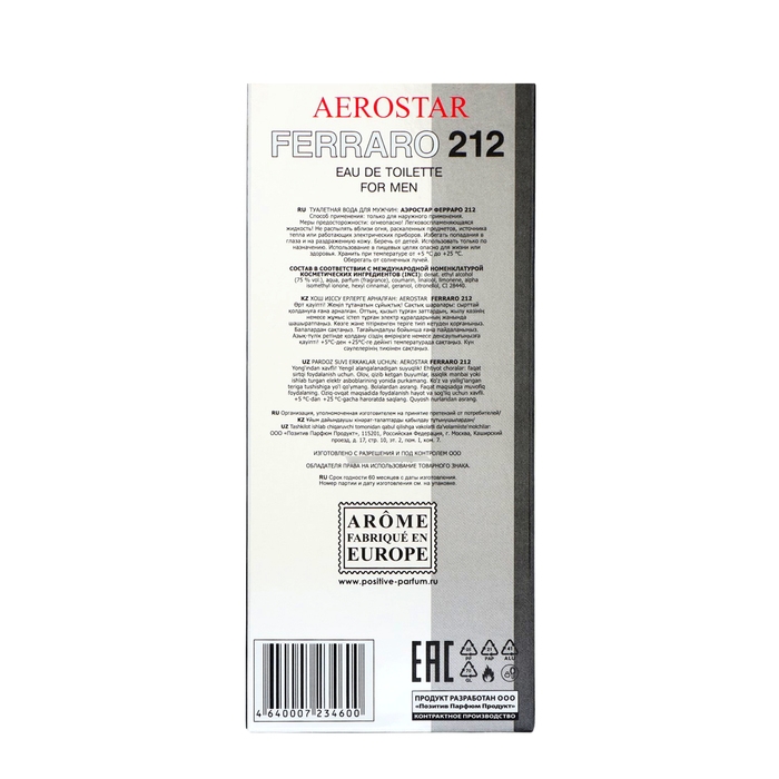 Туалетная вода мужская Aerostat Ferraro 212 - это аромат, который сочетает в себе свежесть и мужественность, создавая неповторимый образ современного и уверенного в себе мужчины.