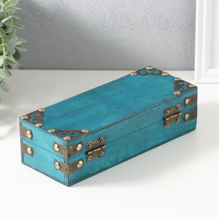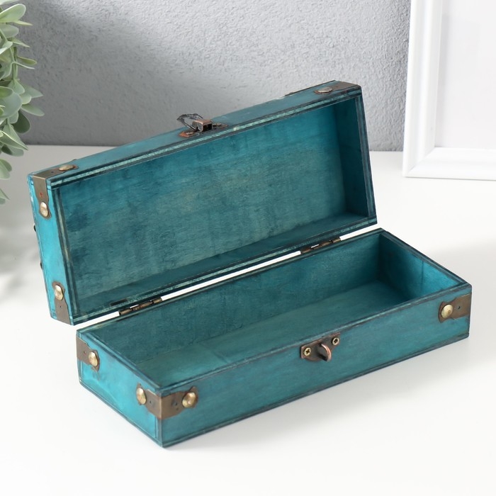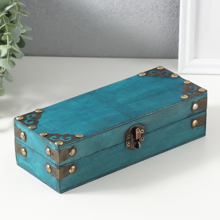 Шкатулка сундук дерево "Амадео" голубая 21,5х8,7х6 см