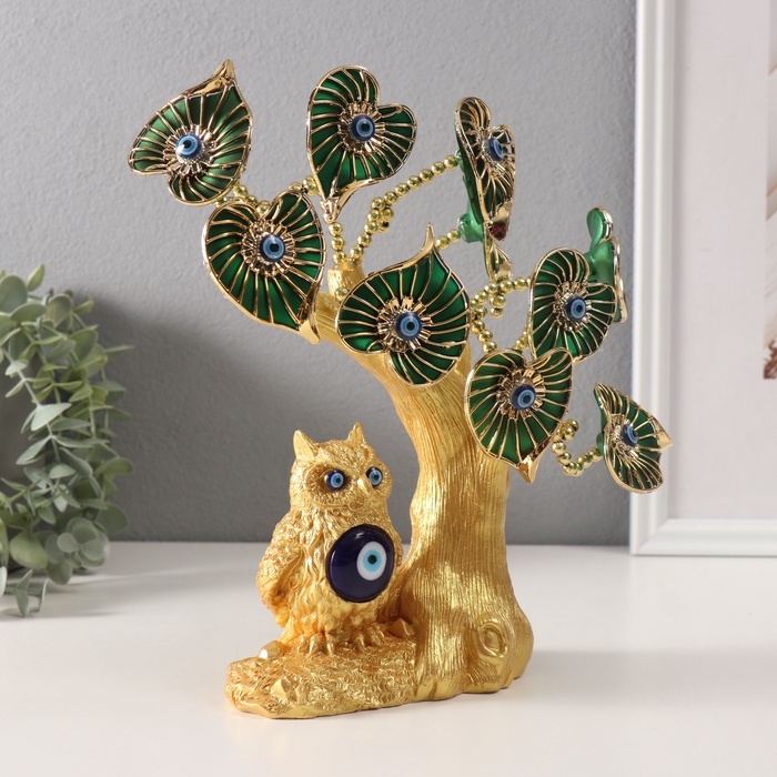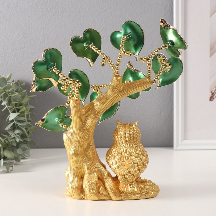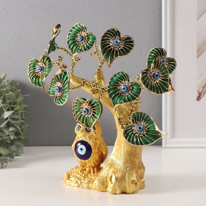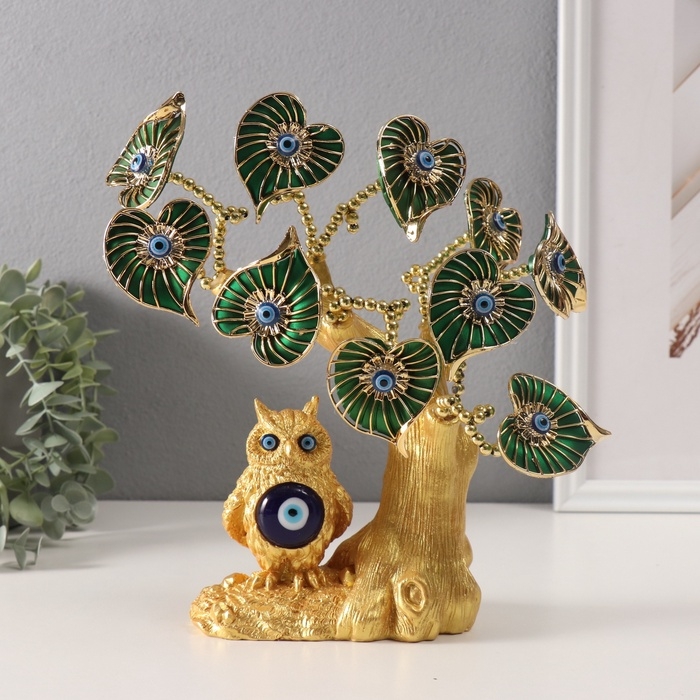 Сувенир от сглаза "Дерево с цветами-сердечками, с совой" 7х13х22,5 см