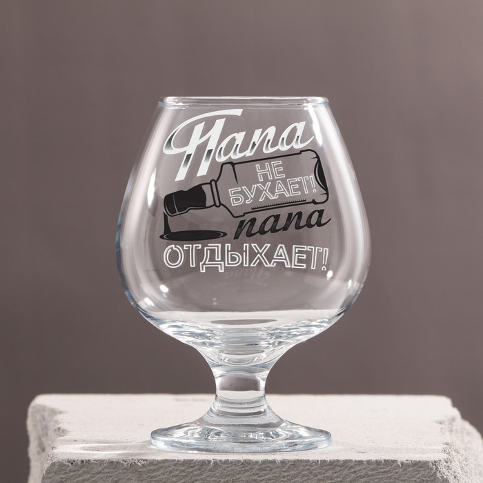 Бокал для коньяка "Папа не бухает" бутылка, 265 мл, деколь