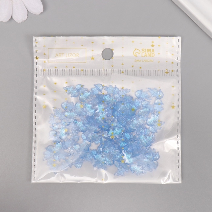 Декор для творчества акрил "Медуза" синий, светится в темноте набор 100 шт 1,2х0,7 см