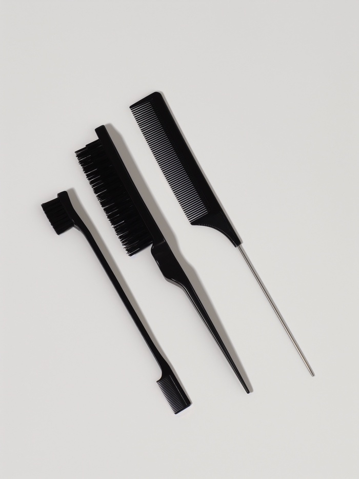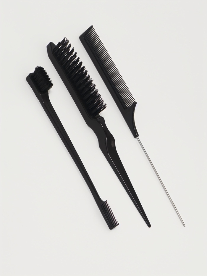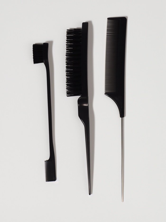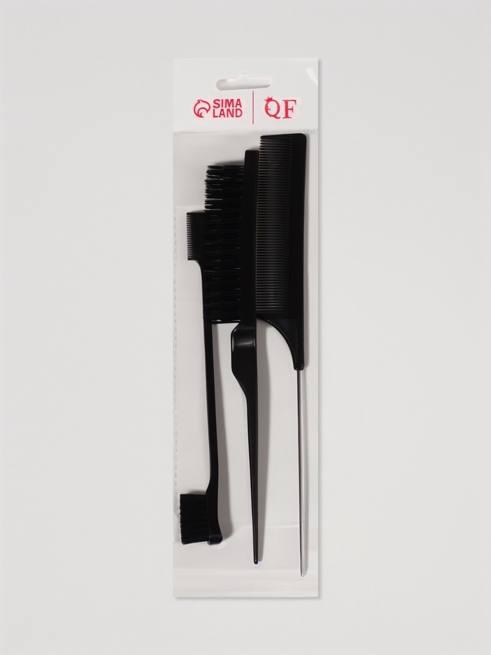 Набор расчесок 3 предмета (щетка, с хвостиком, мини-щетка) пластик черный пакет QF