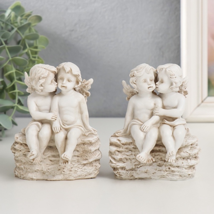 Сувенир полистоун "Ангелы на камешке" 10,5х7,5х8,5 см