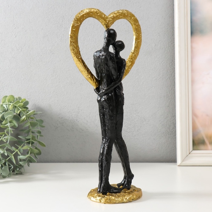 Сувенир полистоун "Абстракция. Поцелуй у сердца" золото с чёрным 14,5х9х32 см