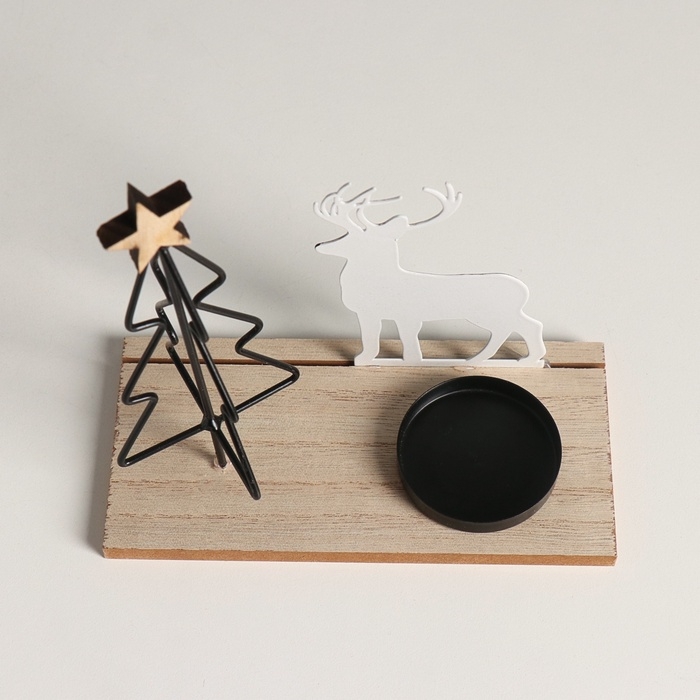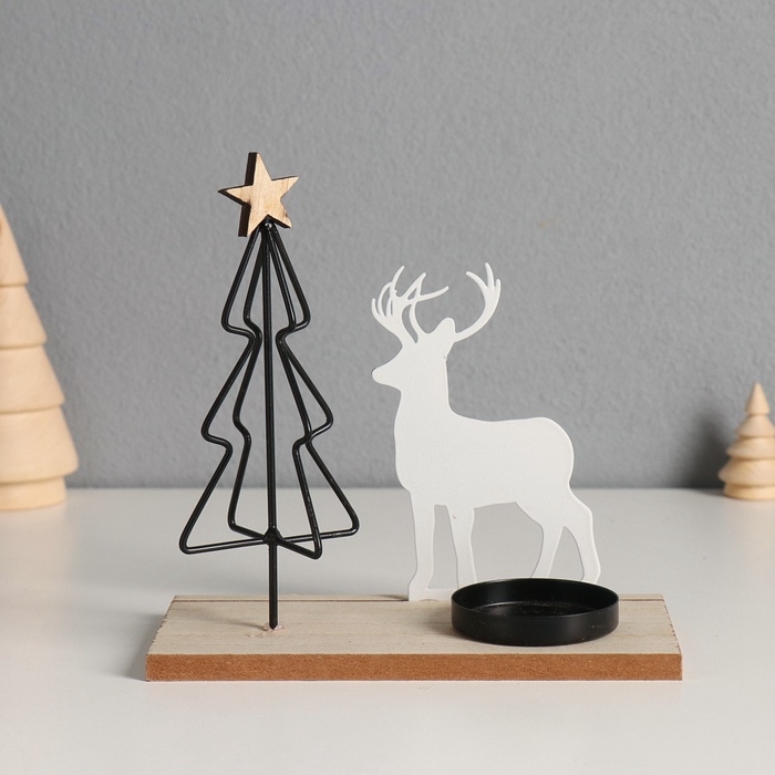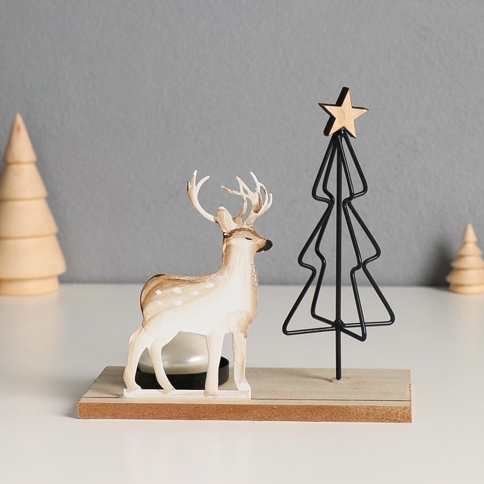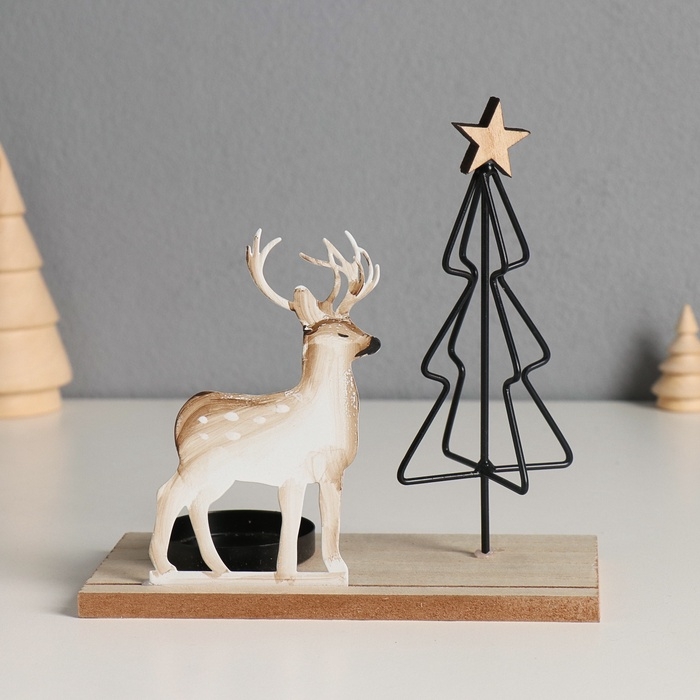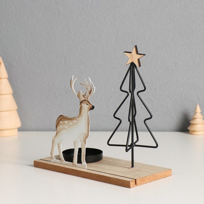 Подсвечник металл, дерево на 1 свечу "Олень у ёлочки" d=4 см 7,5х16х16 см