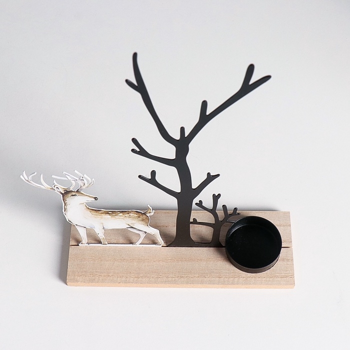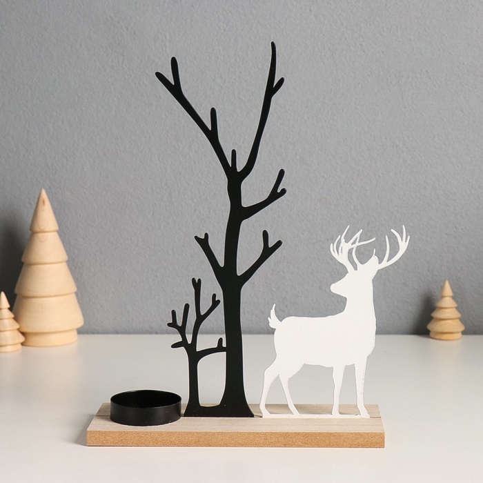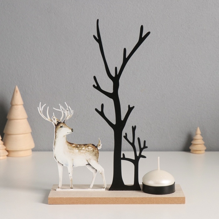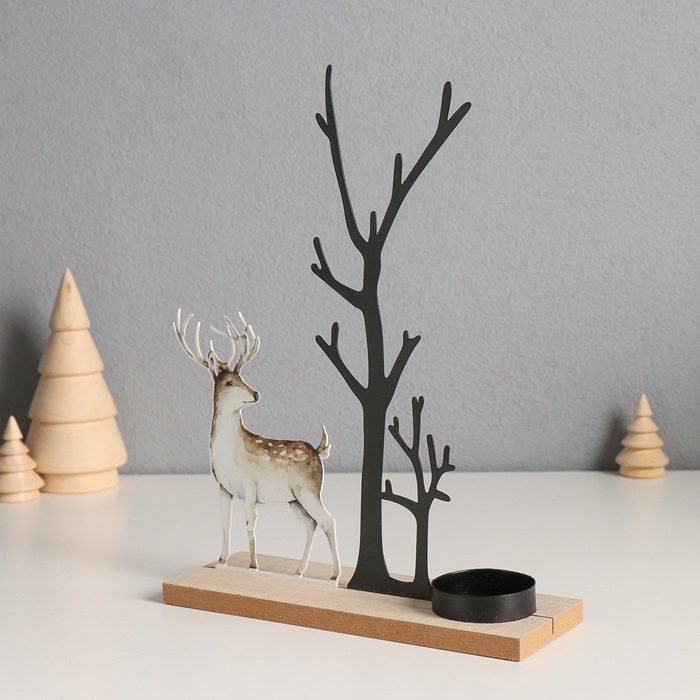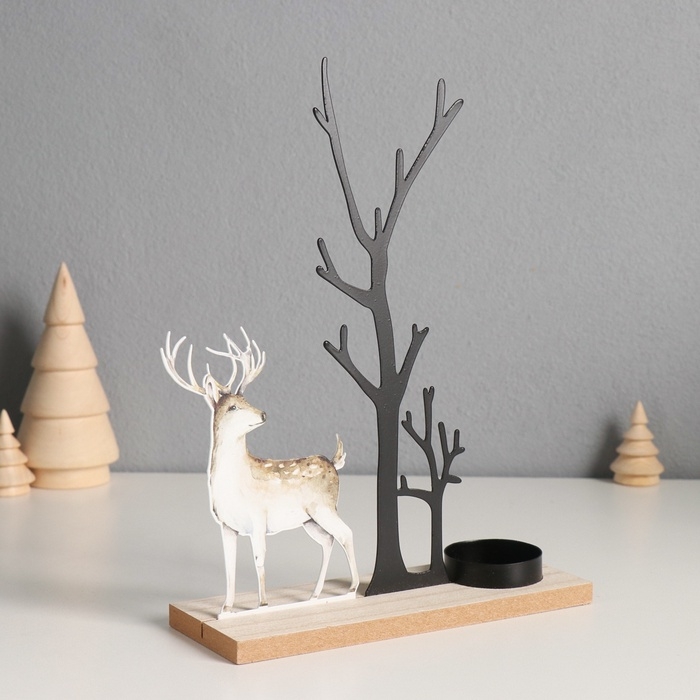 Подсвечник металл, дерево на 1 свечу "Олень у дерева" d=4 см 6х19х23,5 см