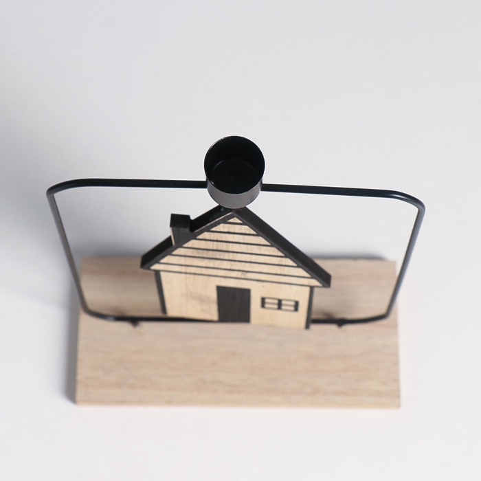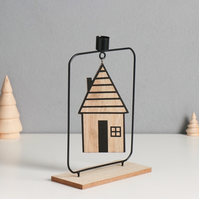 Подсвечник металл, дерево на 1 свечу "Домик" d=2 см 6х15х24 см
