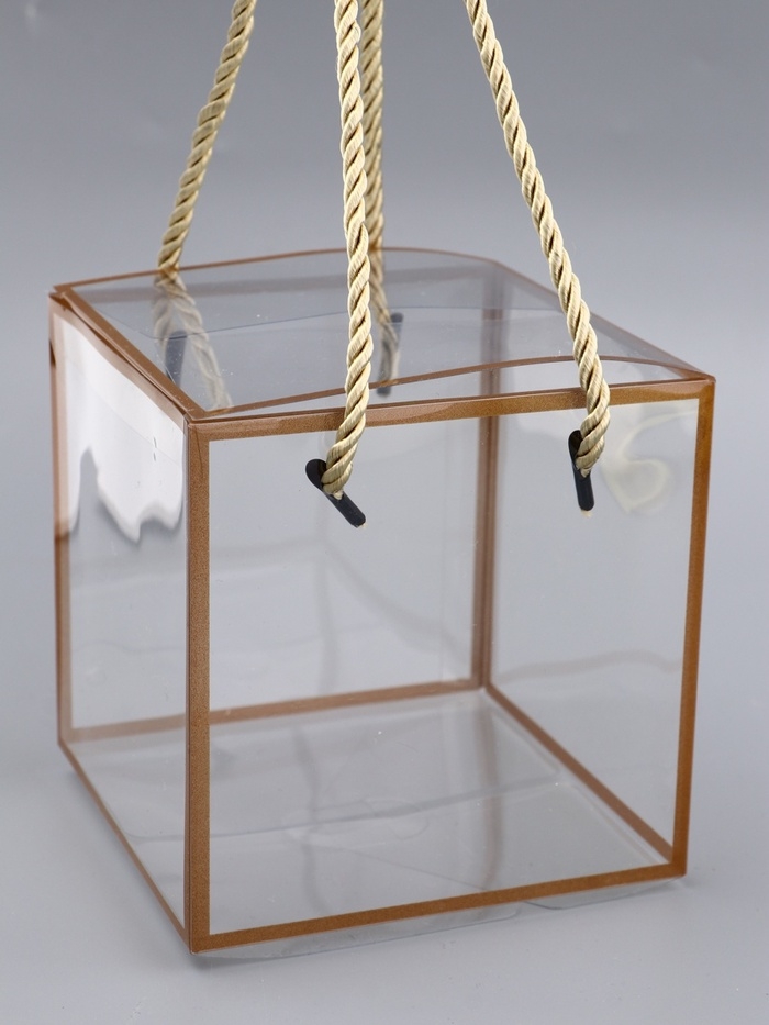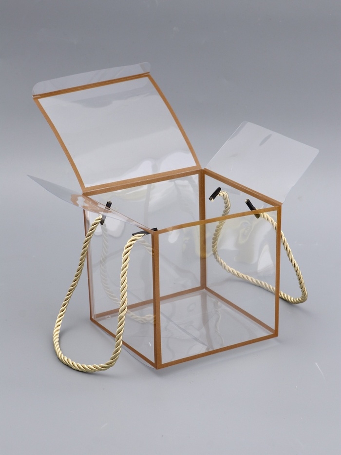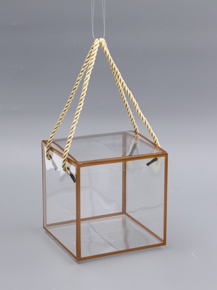 Коробка из PET с ручками, золотая, 12 х 12 х 12 см